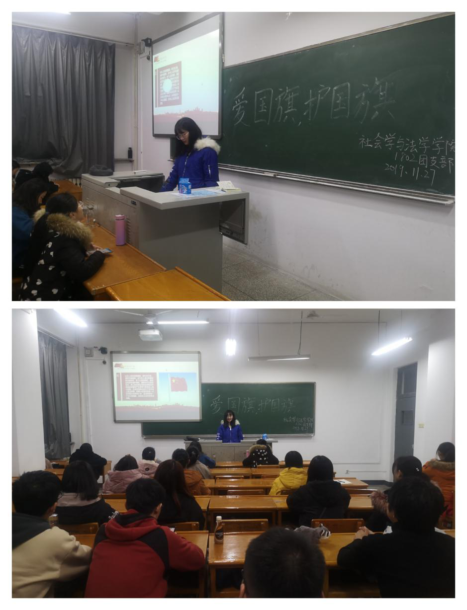 为进一步弘扬爱国主义精神,使同学们形成自觉维护国旗尊严,尊重和爱护国旗的习惯,11月27日,公司1801团支部在01204教室举办了“爱国旗,护国旗”主题团日活动。