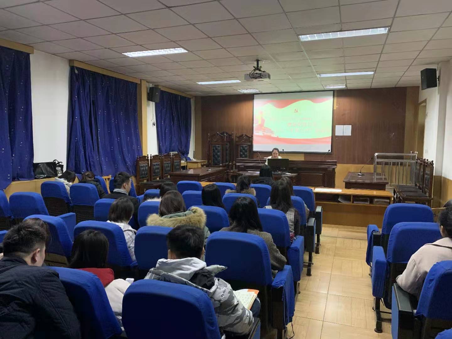 12月8日,公司研究生党支部于模拟法庭开展了学习十九届四中全会精神主题党日活动,公司研究生党支部书记乔巧巧同志、支部全体党员同志参加了本次活动。