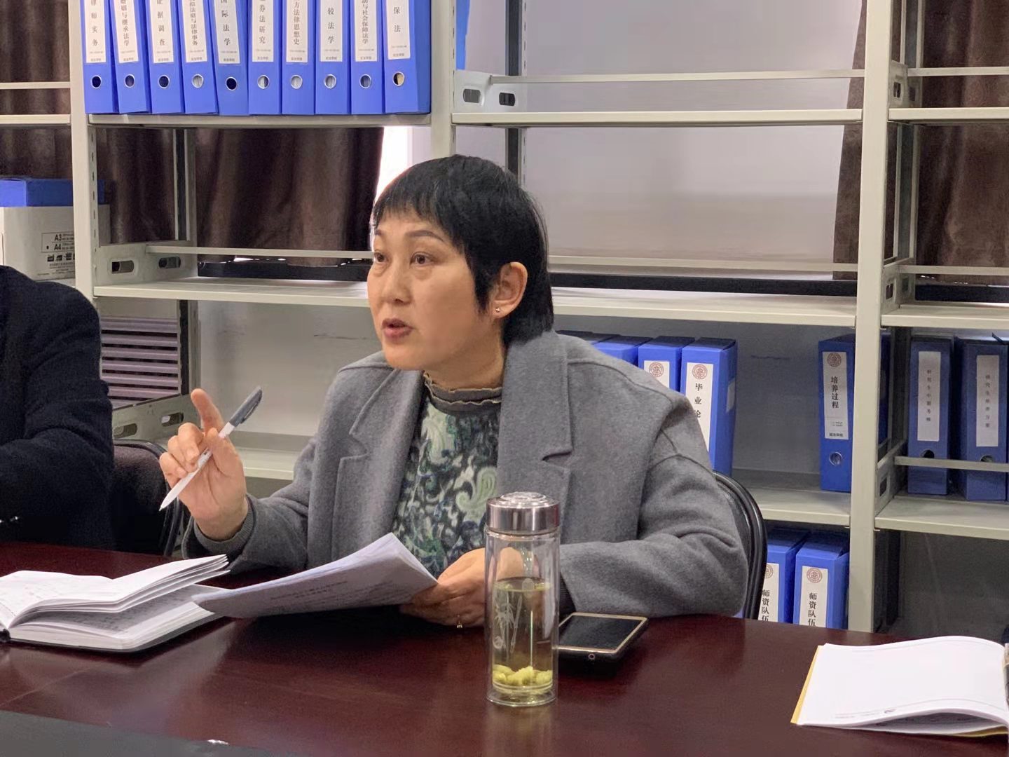 大会第二项,党外人士、教师代表梁灵石进行发言。梁老师表示,身为教师代表能够经常感受到党支部在学院工作中发挥的积极作用,并提出可将华夏司法博物馆、临汾市第三监狱等作为师生学习实践的良好法制教育基地,培养员工学识见识,希望未来能够在学院统筹下进一步发挥教育作用。