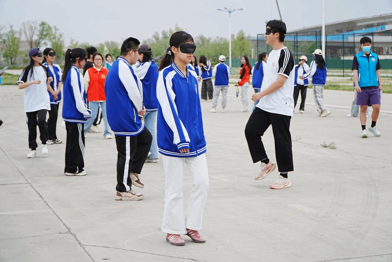 蒙眼遮目,音乐为号,一场关于平衡感与内心定力的试炼拉开帷幕。音乐响起,学员们小心翼翼地抬起脚,再轻轻落下,每一步都充满了谨慎与试探。他们不断衡量着踏步的高度,以确保符合游戏规则。这场挑战不仅考验平衡感,更启示我们在未知中要谨慎前行,步步为营。