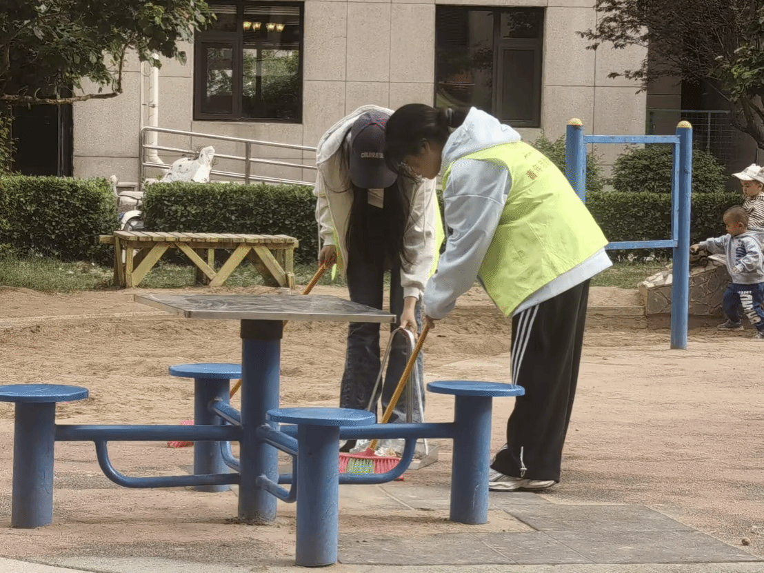 活动当日,志愿者们携带工具,准时集合。他们分工明确、协作有序,不仅细致清扫了路面的烟蒂纸屑,擦拭了社区内的健身器材,还清理了绿化带内的隐蔽垃圾。经过志愿者们的辛勤劳动,社区环境焕然一新。
