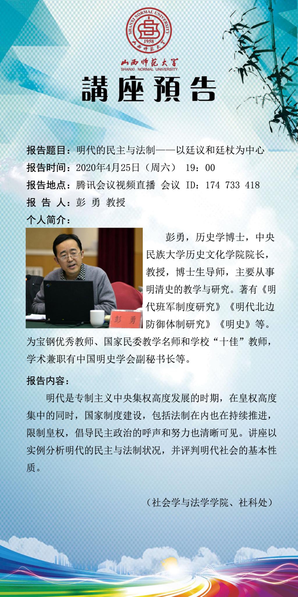 中央民族大学彭勇教授应邀为我院作学术报告