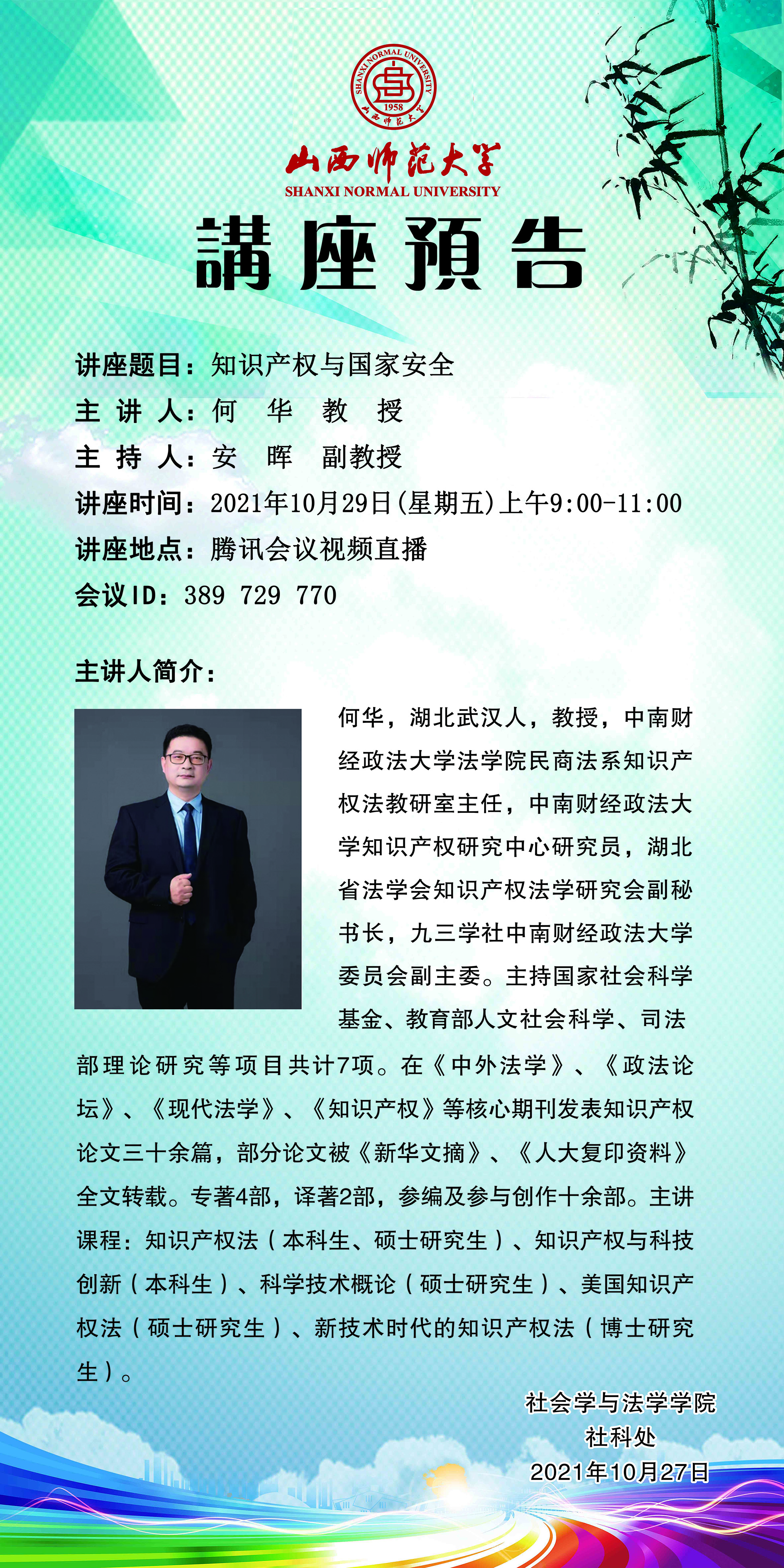 中南财经政法大学法学院何华教授应beat365正版邀请举办视频直播讲座