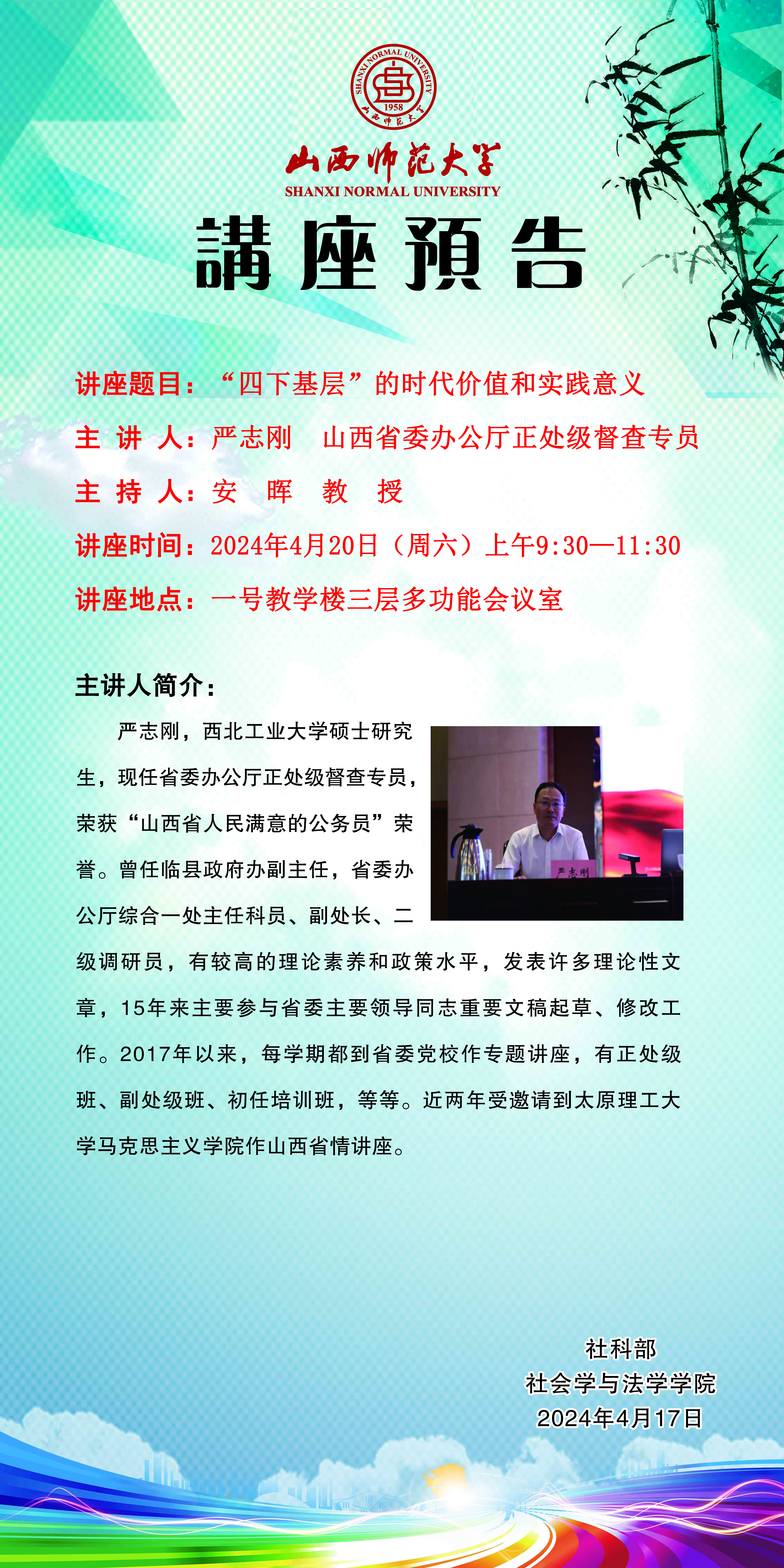 山西省委办公厅正处级督察专员严志刚应邀来我院做学术报告